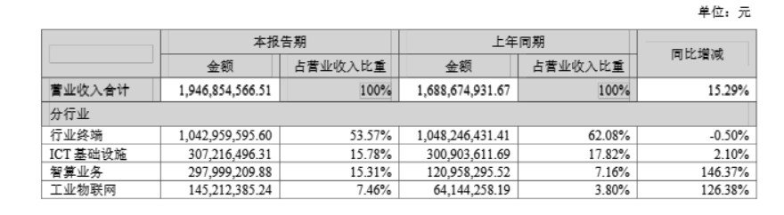高增长背后的隐忧今年上半年智微智能的整体业绩表现较为强劲。报告显示,公司实现营业收入19.47亿元,同比增长15.29%;归属于上市公司股东的净利润1.02亿元,同比大幅增长80.08%。扣除非经常性损益后的净利润为0.88亿元,同比增长77.18%。